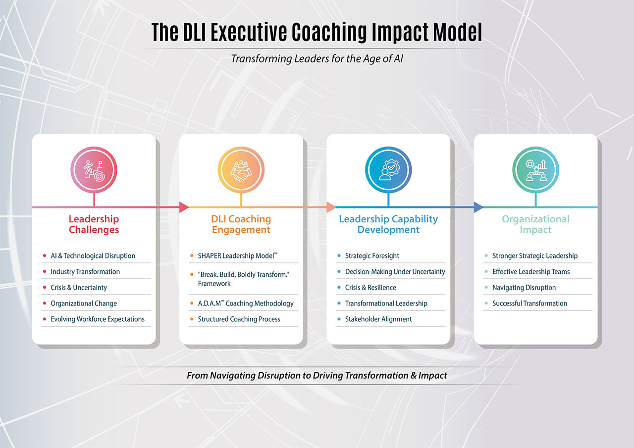 Executive coaching at DLI focuses on helping leaders become architects of transformation rather than reactive managers of change.